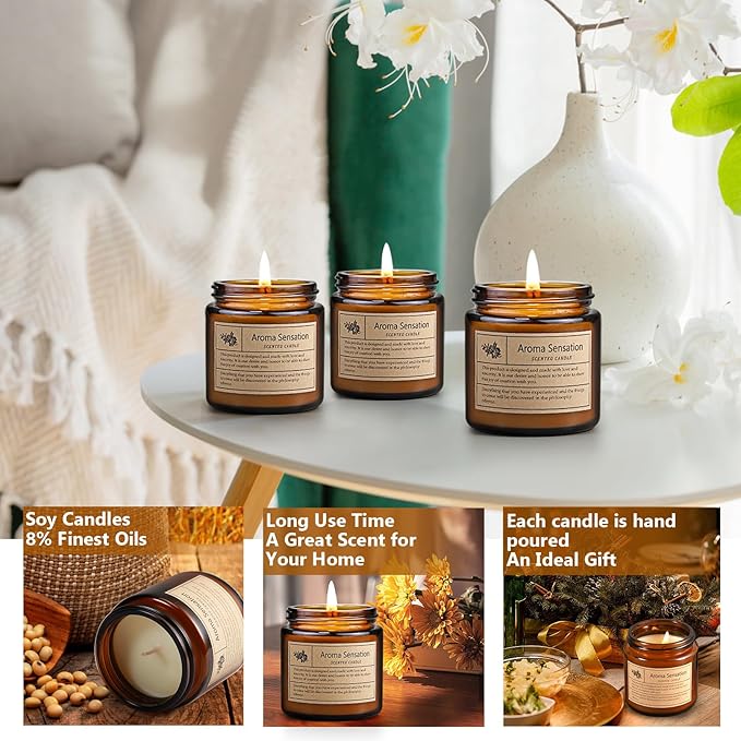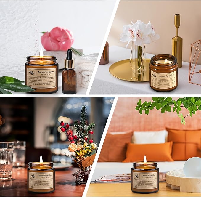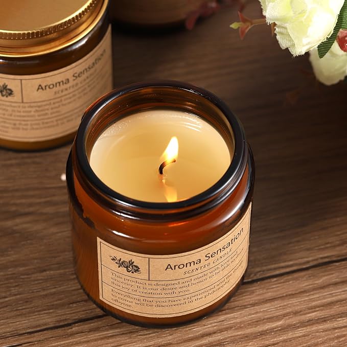 - Cozy and Relaxing: Our aromatherapy candles with uniquely fragrance soothe you after a long and tiring day. In addition, amber glass jars are very practical and you can use them as home decoration.