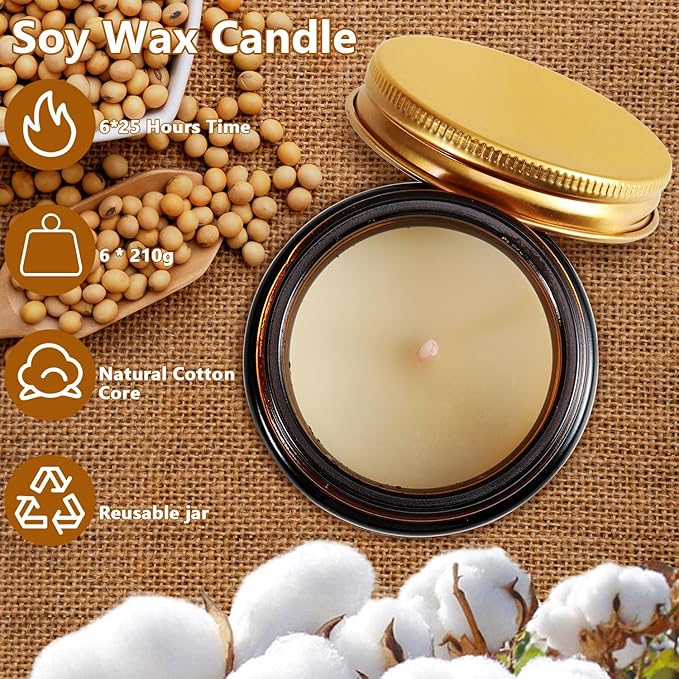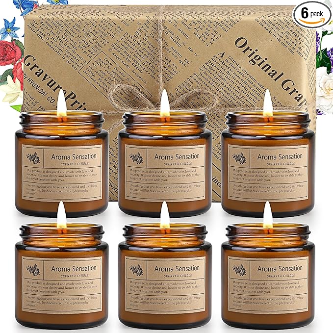 Jeffbaubl 6 Pack Candles for Home Scented,Scented Candles Gifts for Women,Aromatherapy Candles,3.5 OZ Amber Jar Candles,Long Lasting Candles,Candles Gift Set for Birthday Valentine Present