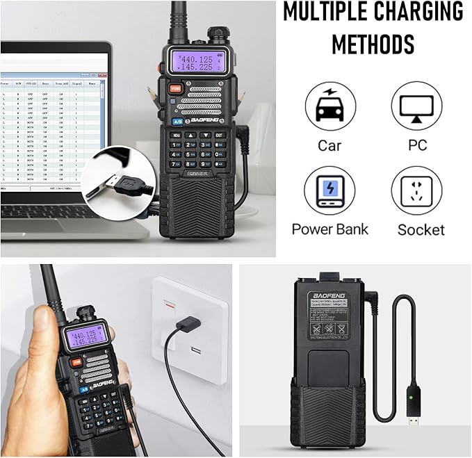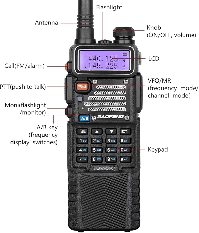 - ✔️ Upgrades for Baofeng UV-5R: High output power 8 W; Transmit frequency range: VHF 144-148 MHz and UHF 420-450 MHz; Receive frequency range: VHF 136-174 MHz and UHF 400-480 MHz; FCC ID: 2AJGM-UV5RPRO; Ideal for reliable communication in various outdoor and emergency scenarios