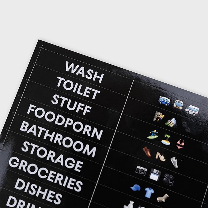 - Perfect for camping: with the adhesive labels immediately recognise the sink, toilet or gas stove. Absolute camper must have!
