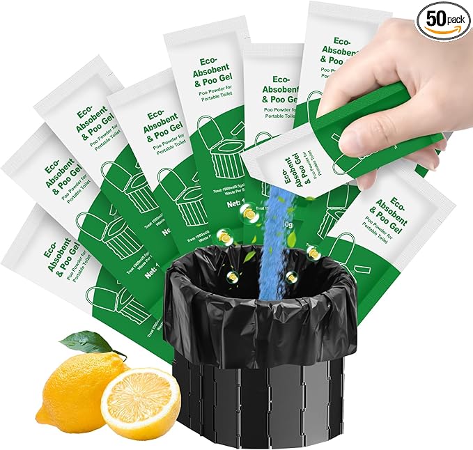 Poo Gel for Portable Toilet, 50 Eco Camping Toilets Pee Powder Deodorizer Urine Pee Absorbent Liquid Solidifier for Adult Porta Potty Chemicals Bucket Toilet Outdoor Camping Hiking Emergency Toilet