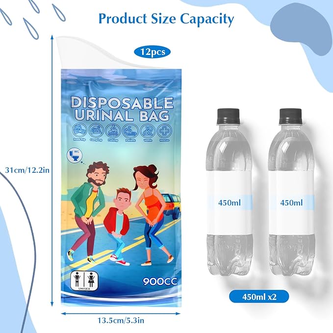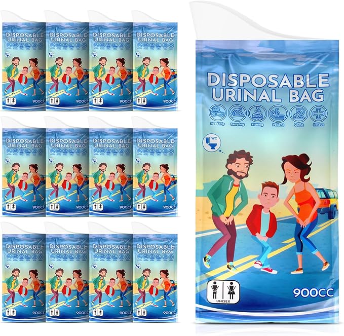 Owfeel 12 Pack Disposable Urine Bags, 900ml Unisex Portable Urine Bags for Camping, Disposable Urinals Vomit Bags for Traffic Jams Camping Hiking for Men Women Kids Patient
