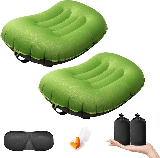 DAWNTREES 2 Pack Inflatable Pillow for Camping,Portable Compressible Ultra-Light Travel Inflatable Pillow for Sleeping,Support The Neck and Lumbar,Backpacking Essentials (Green)