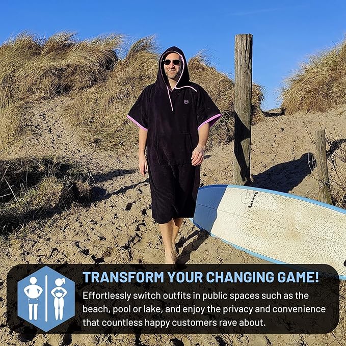 - CHANGE WITH EASE - Transform your changing game with our wearable towel poncho! Effortlessly switch outfits in public spaces such as the beach, pool or lake, and enjoy the privacy and convenience that countless happy customers rave about. Keep your hands free for changing without risk of dropping your clothes. This surf poncho the must-have accessory for any water sports enthusiast.