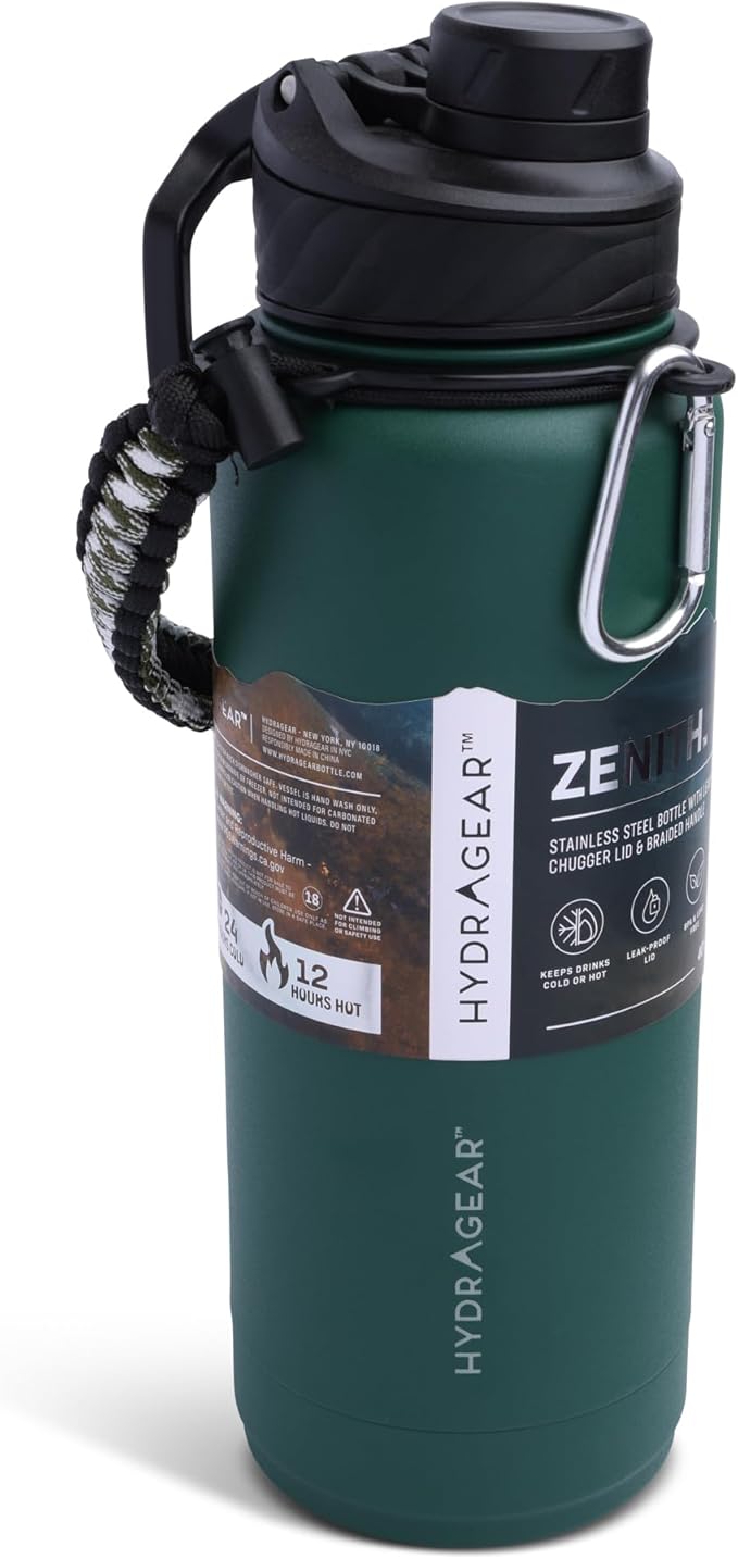 Zenith Chugger Stainless Steel Bottle with Carabiner, Compass, Signal Whistle, and Fire Starter - 40 Oz - Rosemary Powder Coat