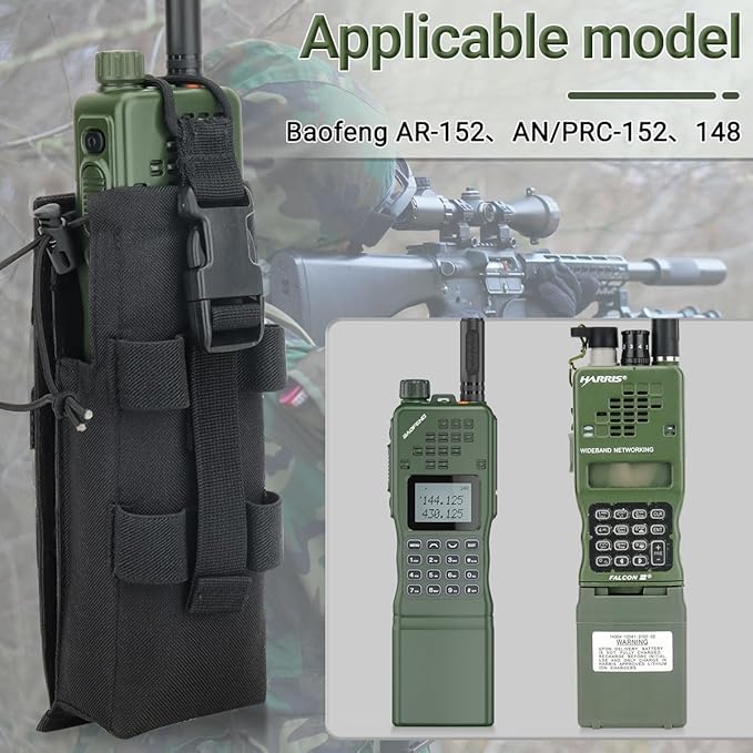 Tactical Molle Radio Holster Holder Case Military Heavy Duty Radios Holster Bag for AR-152 AN/PRC-152 148 UV-25 Two Ways Walkie Talkies Adjustable Storage(Black