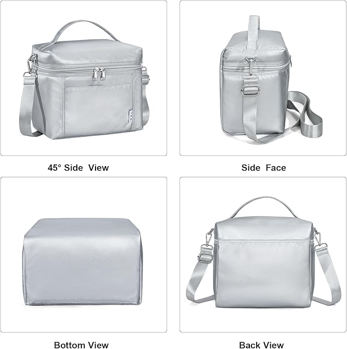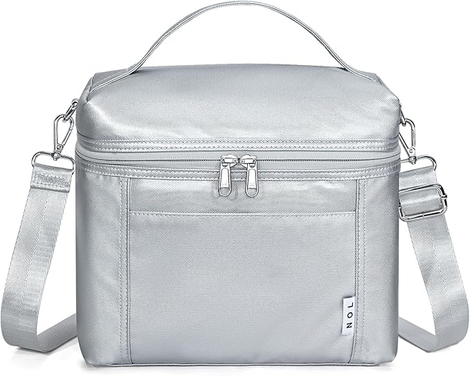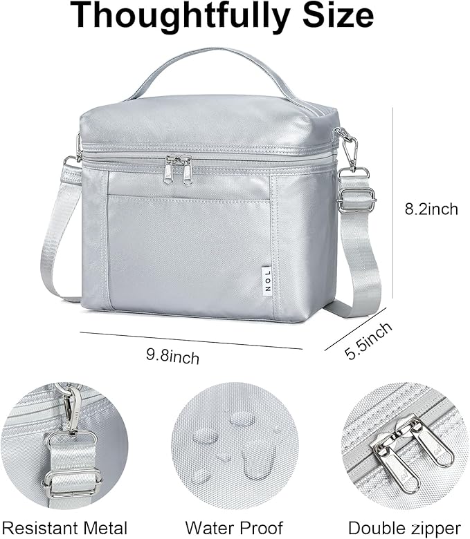 NOL Natural Organic Lifestyle Insulated Lunch Bags for Women Cooler Bag Lightweight Nylon Waterproof Lunch Box For Work (Silver, Medium(normal))