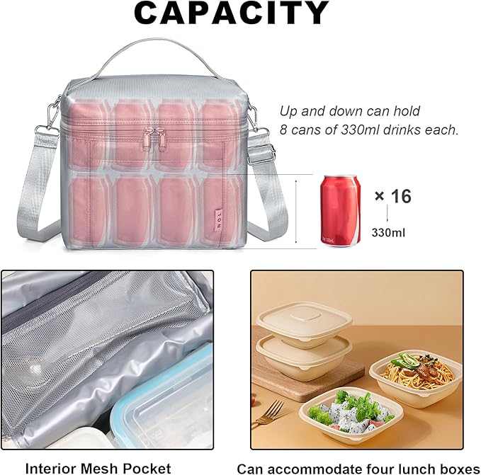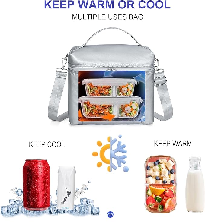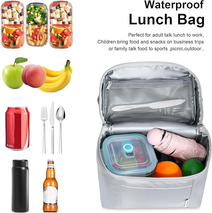 - Construction & Pockets: 1 main compartment with zipper closure(double zips in YKK), 1 interior zip mesh pocket can fit paper napkin, handkerchief, keys, or cellphone. Outside 1 insert pocket in the front of the bag for small essentials.Our lunch bags for women/men is spacious enough to fit your lunch box, snacks, and drinks and prefect to take foods and snacks with your outdoor activities.