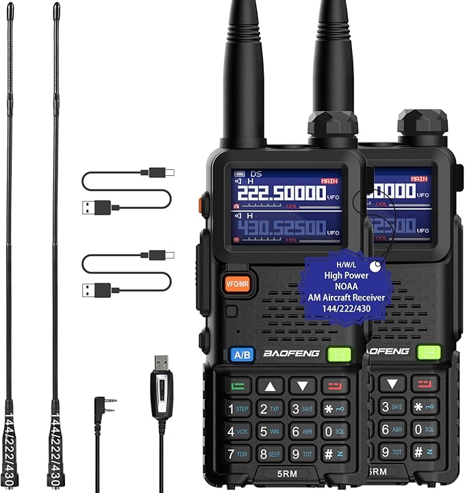 - This 5RM 8W ham radio is an upgraded version of the baofeng UV-5R with the reliability you expect from a baofeng handheld radio. This HT built-in multiple bands, AM aircraft band, 2M, 1.25M, 70CM, FM and pre-programmed NOAA weather channels. Enjoy high-quality and clear transmission and reception of audio.