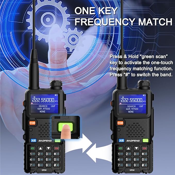 - This 5RM 8W ham radio is an upgraded version of the baofeng UV-5R with the reliability you expect from a baofeng handheld radio. This HT built-in multiple bands, AM aircraft band, 2M, 1.25M, 70CM, FM and pre-programmed NOAA weather channels. Enjoy high-quality and clear transmission and reception of audio.