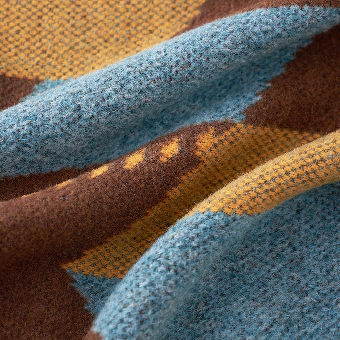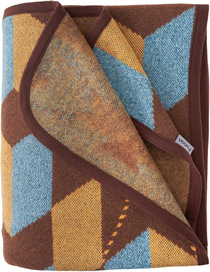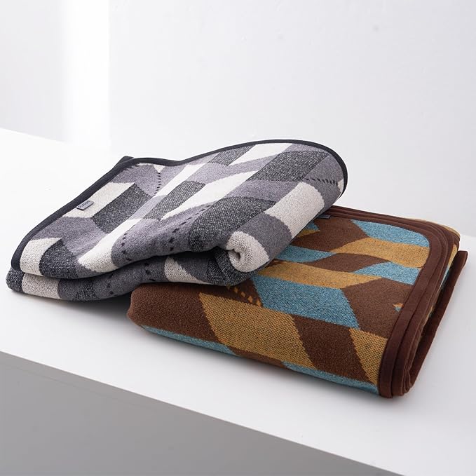 PuTian Merino Wool Blanket - Large Warm Soft Washable Camp Blanket Throw for Bed Couch Camping Outdoor Travel Emergency, Brown Geometry