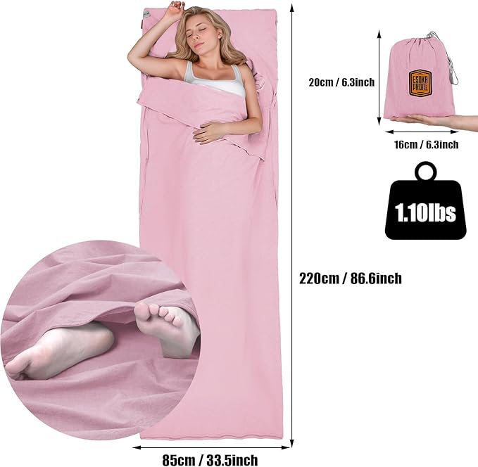 - Skin-Friendly Material:Made of hight quality cotton,breathable,warmth and comfort,will provide you with the best possible sleeping comfort and relieve fatigue during your trip.The choice of special materials ensures that the fabric dries very quickly in the air.