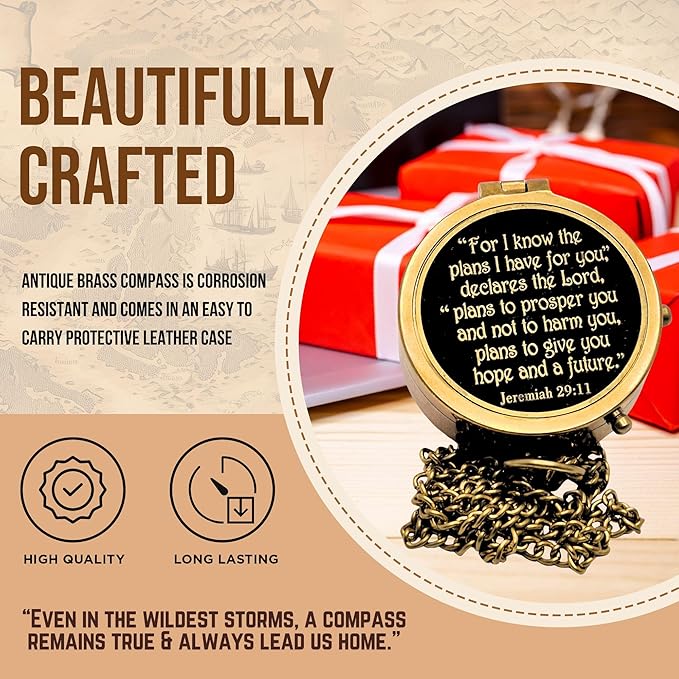 - ✅ UNIQUE AND INSPIRATIONAL GIFT OF FAITH- Motivational Uplifting Gift Compass Featuring the timeless wisdom of "JEREMIAH 29:11 - FOR I KNOW THE PLANS I HAVE FOR YOU". It's A Unique Confirmation Gift For Men, Communion Gift For Teenage Kids, Baptism Gift For Boys, Graduation Gift For Girls, Appreciation Gifts For Women, Meaningful Gift For Son, Sentimental Gift For Grandson.