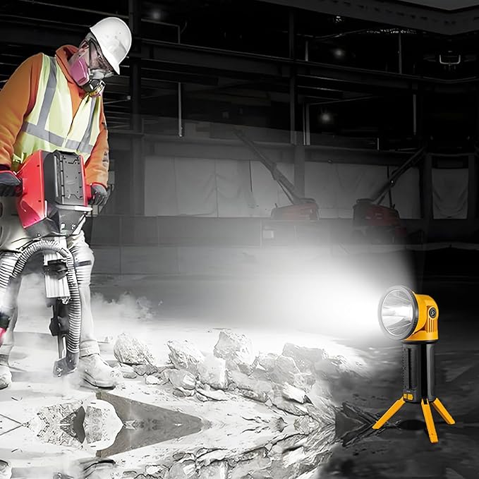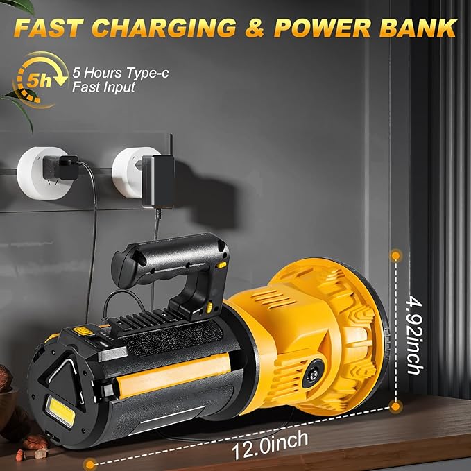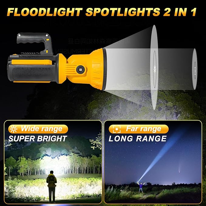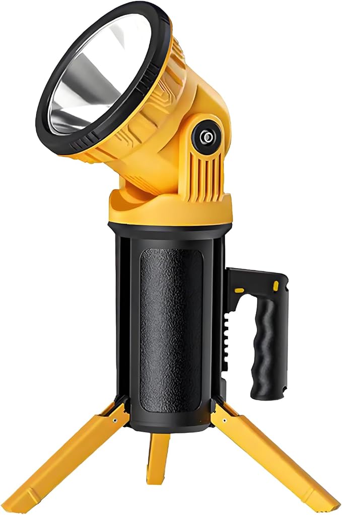 Handheld Spotlight Outdoor Flashlight with Foldable Tripod, 10000 Lumen LED Rechargeable Searchlight Spot Light, Impact Resistant Work Light with Detachable & Adjustable Handle (Large)