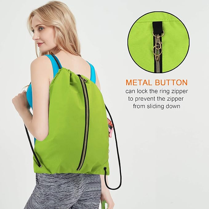 - 【EXTRA LARGE & CREATIVE FIXED DESIGN】: The size of our string bag is 19.2 "x 15". The string backpack is large enough for the gym, soccer ball, volleyball, tennis racket, wrestling, boxing gloves, clothing & shoes, towel, laptop, and daily supplies. On the top of the small drawstring bags, the drawstring is a fixed metal buckle. The metal button can be used to lock the ring zipper avoiding the zipper from sliding down.