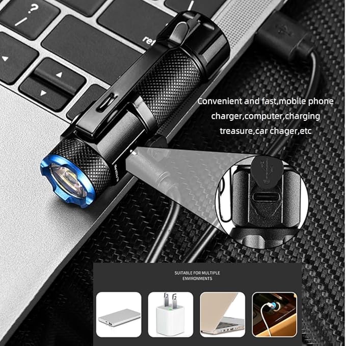 - 【USB C Rechargeable】This EDC flashlight is designed with a USB C charging port, it can be inserted into the charging port without regard to the front and back of the plug, which makes charging more convenient and easy. The charging indicator allows you to keep track of the charging status of the power and makes the charging process safer. Rechargeable battery is included