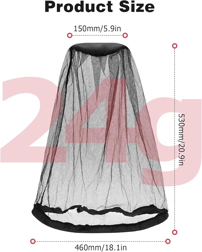 - Custom Extra-Large Size: Our mosquito mask is designed to provide extensive coverage for your neck and shoulders. The solid fabric top measures 15cm x 15cm, the bottom hem circumference is 100cm, and the mesh body length is 53cm, giving you maximum protection.