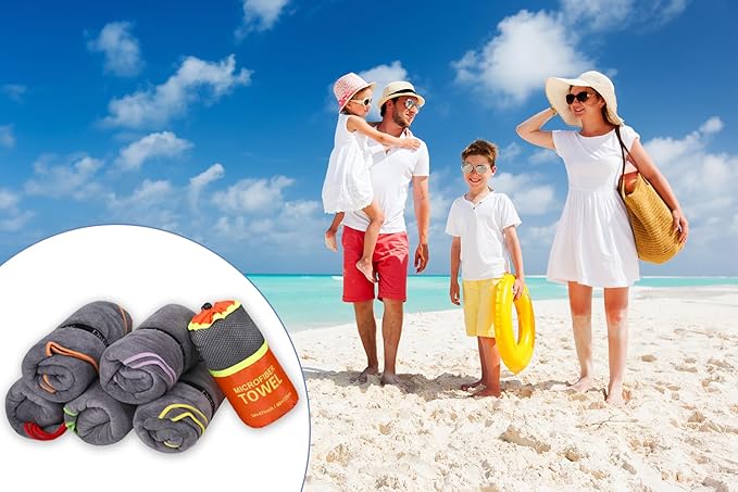 - Family Set Design: The towel set includes 6 pack microfiber towels and a breathable mesh bag, each towel size: 24 "x 48". To facilitate family members distinguish their own towels, each towel edge seams in different colors. This microfiber towel is a great choice for your family.