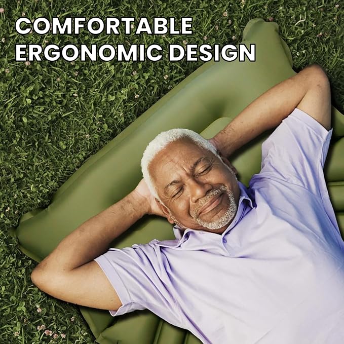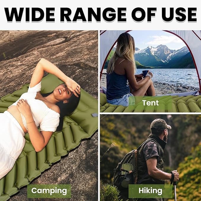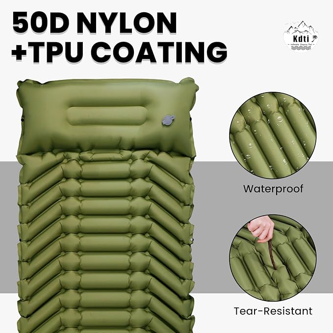 - 【50D Nylon & Super Durable】Camping sleeping pad made of outdoor grade material 50D nylon, providing extreme pressure-bearing and durability. The edge of the camping mat is heat-sealed, so you don't have to worry about air leaks or tears, even under harsh conditions.