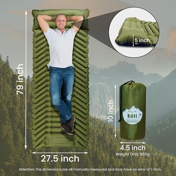 - 【Innovation Design】Kdti sleeping pad innovation columnar-shaped air cells design is made special with ergonomics, built-in pillow are designed to relieve back and neck pressure, whether on your back or your side, ensuring comfort and warm for your sleep all night!