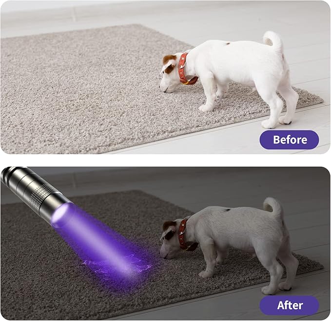 - ▶【395M BLACKLIGHT】395nm wavelength can help to detect what naked eye can not see, like dog and other pet urine/stains, driver license, official identification cards, passports, customs or authenticate currency.