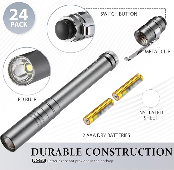 - Durability and User Friendly Setup: the pen light flashlight is crafted from a durable aluminum alloy and feature long lasting LED bulbs that can resist common damage from drops or collisions; Safe and gentle on the skin and body; Additionally, these penlights are easy to disassemble and install, further enhancing the user experience