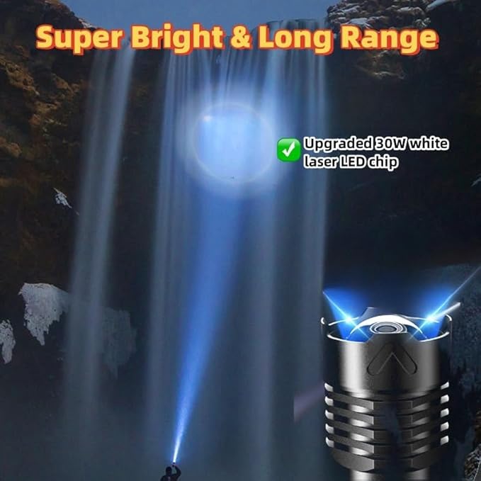 - 1. High Lumen, Adjustable Focus LED Flashlight: Jumpso streamlight flashlight uses an upgraded 30W white laser LED chip, providing 25000 lumen super bright and illuminating 120 sq meters. It focuses up to 3800 feet long range, ideal for outdoor activities and emergencies.