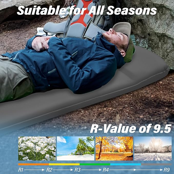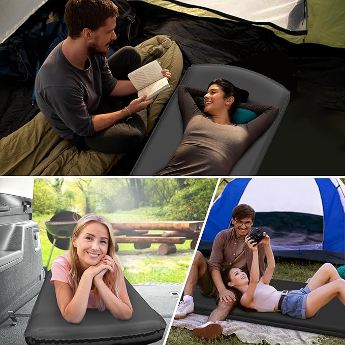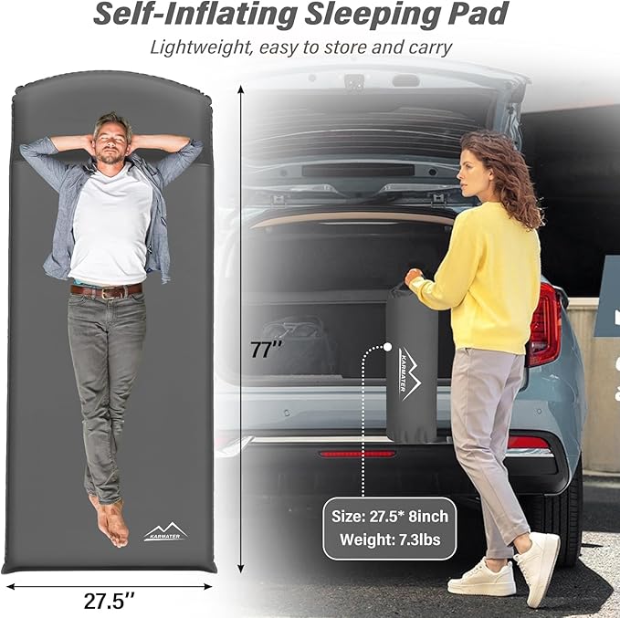 - FIT FOR ALL SEASONS, NO NOISE - The sleeping pad's foam insulates cold air from the ground, and the pongee waterproof coating on the surface is moisture-proof and breathable, keeping you warm in winter and cool in summer. The soft fabric of the self-inflating camping pad ensures no noise. You can sleep peacefully without any disturbance and wake up feeling refreshed.