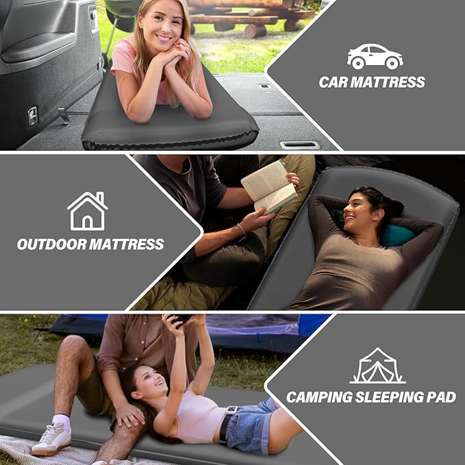 - PORTABILITY - Camping inflatable mat measures 74.8"x24.8"x2" and weighs only 3.5 lbs, the car sleeping pad comes with a storage bag, squeeze the air out of it and roll it into the bag to carry it with you. Meet a variety of scenarios to use, traveling car camping, field sports and so on.