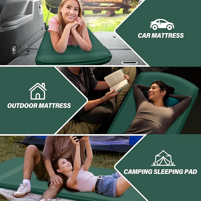 - PORTABILITY - Camping inflatable mat measures 74.8"x24.8"x2" and weighs only 3.5 lbs, the car sleeping pad comes with a storage bag, squeeze the air out of it and roll it into the bag to carry it with you. Meet a variety of scenarios to use, traveling car camping, field sports and so on.