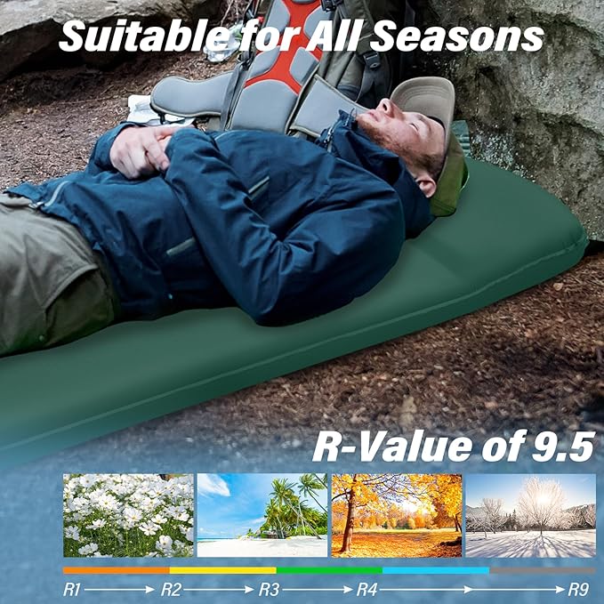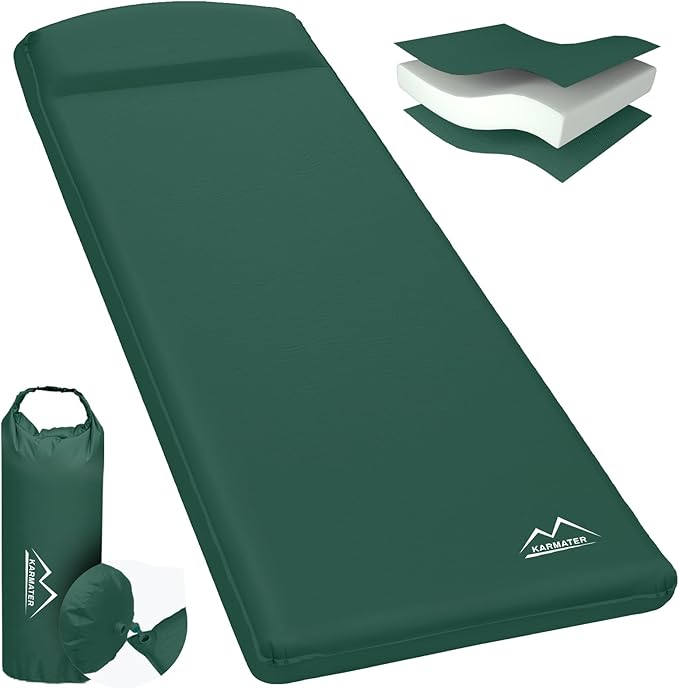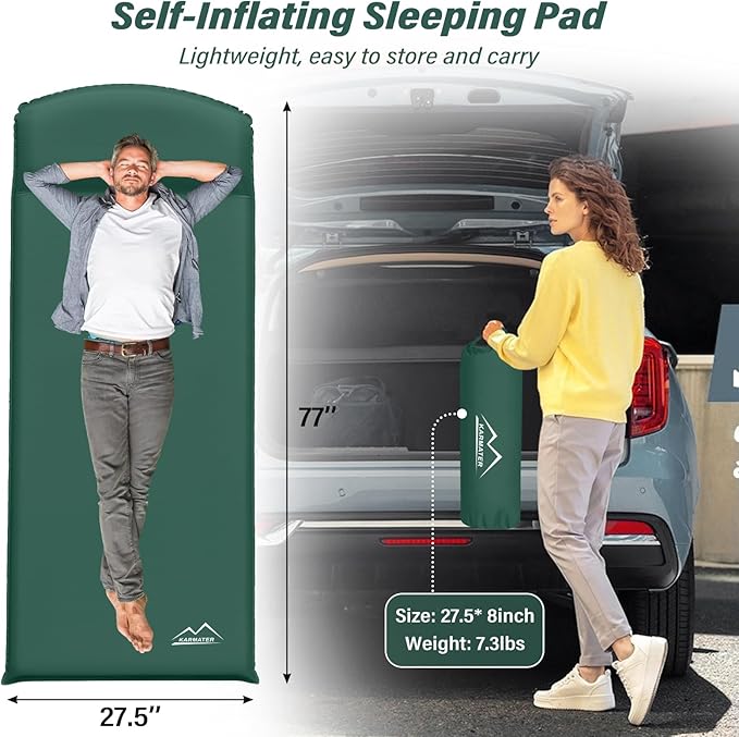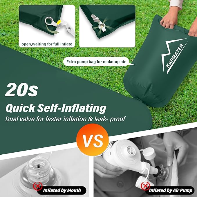 - FIT FOR ALL SEASONS, NO NOISE - The sleeping pad's foam insulates cold air from the ground, and the pongee waterproof coating on the surface is moisture-proof and breathable, keeping you warm in winter and cool in summer. The soft fabric of the self-inflating camping pad ensures no noise. You can sleep peacefully without any disturbance and wake up feeling refreshed.