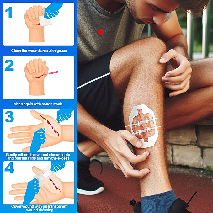 - DURABLE AND SECURE: Our Wound Closure strips provide a strong hold, keeping the wound closed even during active movements. Trusted by outdoor activity