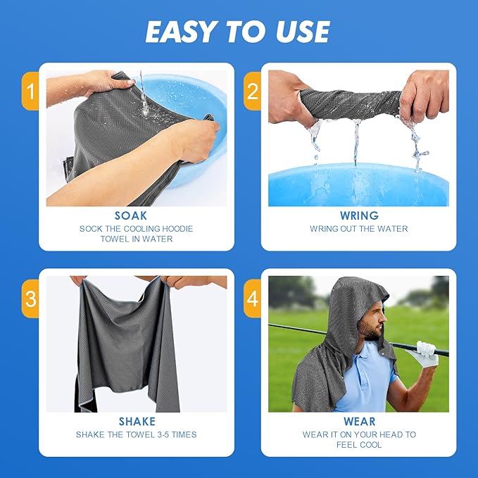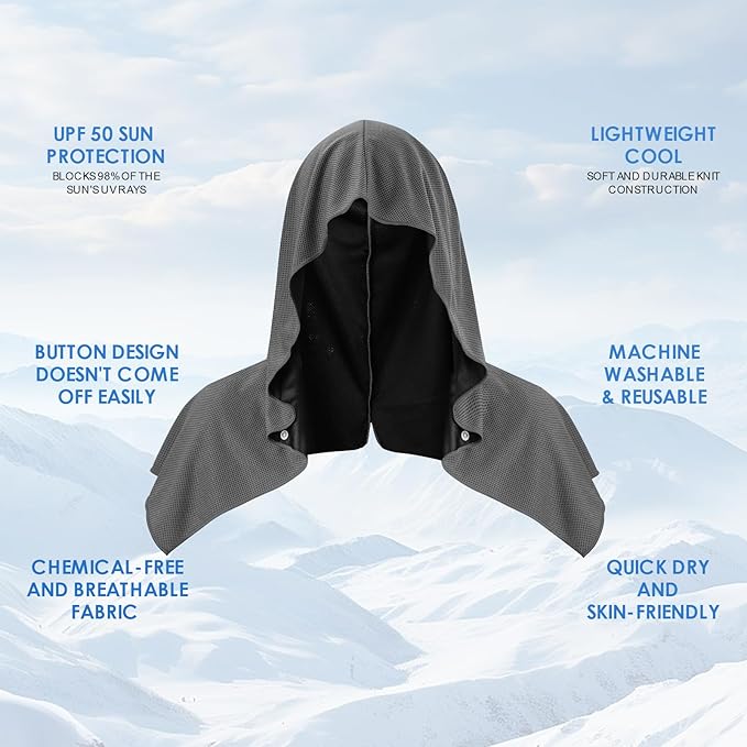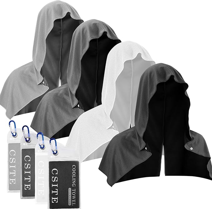 4 Pack Cooling Hoodie Towels for Neck and Face, UPF 50 Sun Protection & Instant Cooling, Ice Towels for Hot Weather, Soft Breathable Towel for Sport, Work Out, Gym, Camping & More Activities