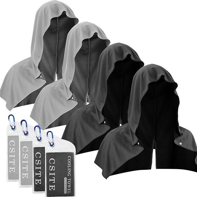 4 Pack Cooling Hoodie Towels for Neck and Face, UPF 50 Sun Protection & Instant Cooling, Ice Towels for Hot Weather, Soft Breathable Towel for Sport, Work Out, Gym, Camping & More Activities