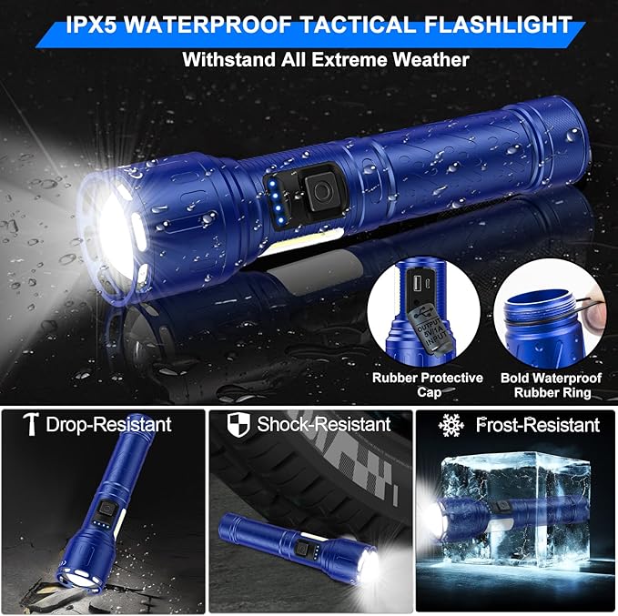 - Special Feature : High Power Long Range LED Flashlight, Super Bright LED Magnetic Flashlight, TYPE-C Rechargeable, 8 Light Modes, Zoomable Adjustable Focus, Weather & Shock Resistant, IPX5 Waterproof, Non Slip Grip High Power Long Range LED Flashlight, Super Bright LED Magnetic Flashlight, TYPE-C Rechargeable, 8 Light Modes, Zoomable Adjustable Focus, Weather & Shock Resistant,… See more