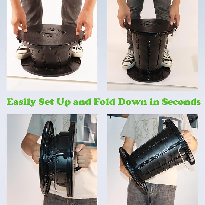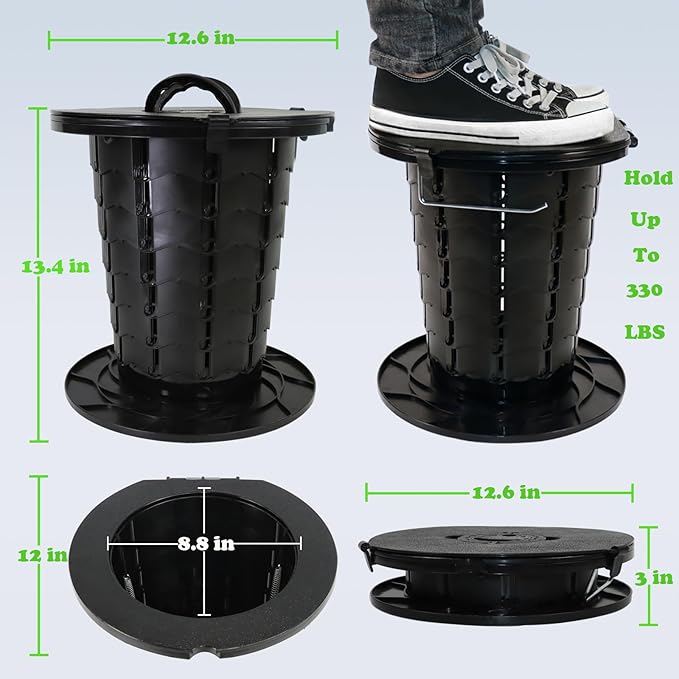 - Simple to Use and Keep Hygiene: The camping toilet can be easily set up and fold down in seconds. All you need to do with this camping potty is pull open the two bottoms, then twist the camp toilet portable clockwise and adjust to your desired height, making sure all the buttons are locked and ready to go. After use,just rotate the camping toilets portable counterclockwise to unlock and it can be retracted to a height of only 3 inches.