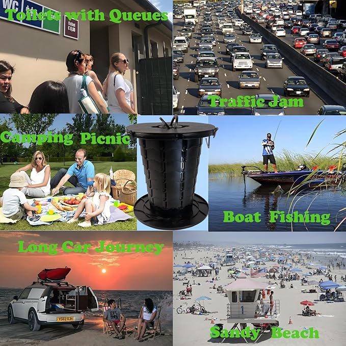 - Multifunctional and Widely Applicable: This portable toilet for camping adopts a multi-functional design makes you free to switch various modes of use, very practical. The portable potty can not only be used as an Portable Camping Toilet, but also as a trash,a stool, a vomiting bucket.To satisfy your different needs when taking outdoor activities. Perfect for camping, hiking, beach, fishing, boating, traveling, traffic jam,construction site, long road trips and anywhere emergencies.