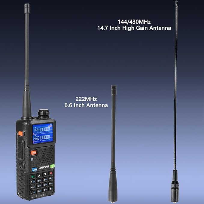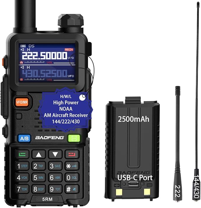 - The baofeng 5RM 8W radio is a professional long range walkie talkies. With FM, AM aircraft band, 144MHz, 222MHz, 350MHz, 430MHz and NOAA weather channels. High gain antenna to enhance the signal and distance. Enjoy high quality and clear audio transmission and reception function.