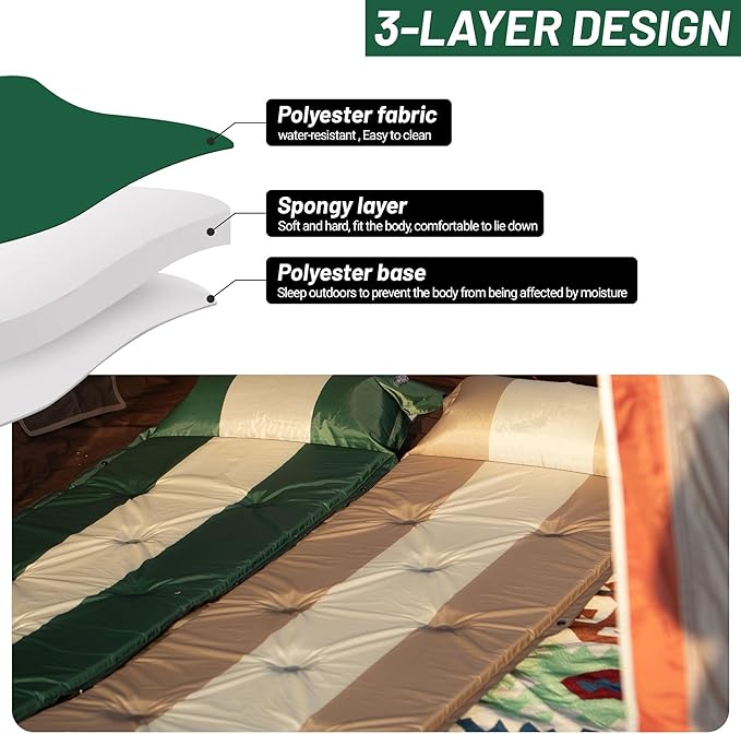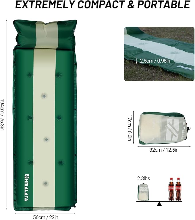 - 【Soft material】The size of the sleeping pad is 194x56x2.5 cm, which is made of high-quality polyester and has a soft and comfortable surface; The interior is filled with High-density foam to provide soft support.