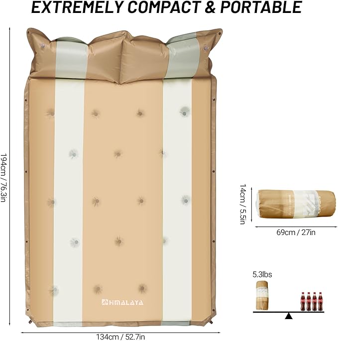 - 【Soft material】The size of the sleeping pad is 194x134x2.5 cm, which is made of high-quality polyester and has a soft and comfortable surface; The interior is filled with High-density foam to provide soft support.