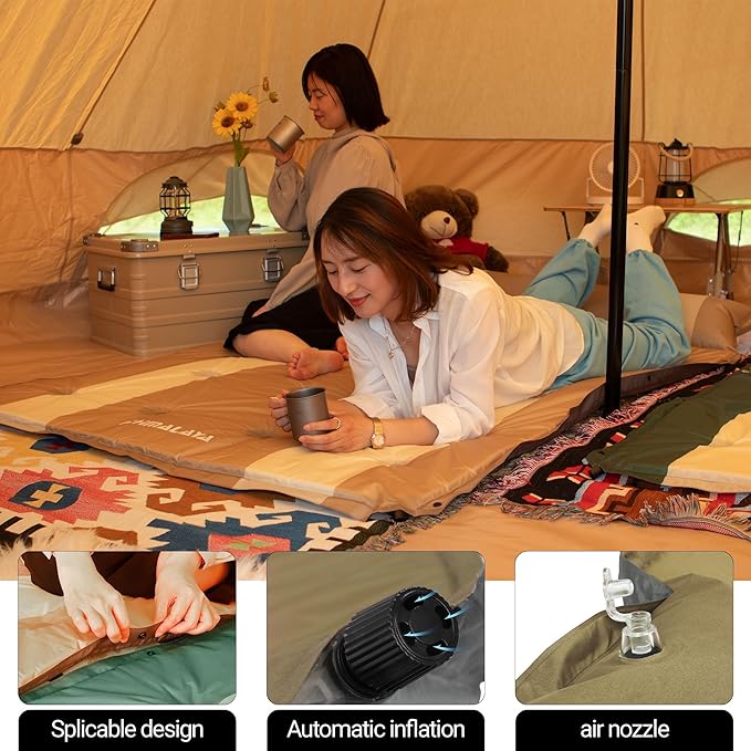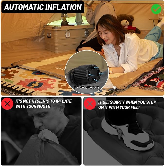 - 【Fast Inflation and Deflation】There is an automatic inflation nozzle, which can realize automatic inflation and deflation with a slight twist, and can be inflated with counterclockwise rotation. Easily build a sleeping area without spending too much time and energy.
