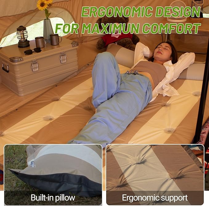 - 【Waterproof】 The inflatable camping mattress is a multi-structure composite, keep you dry and comfortable, and can be used in various environments. The inflatable sleeping pad is one of the camping essentials.