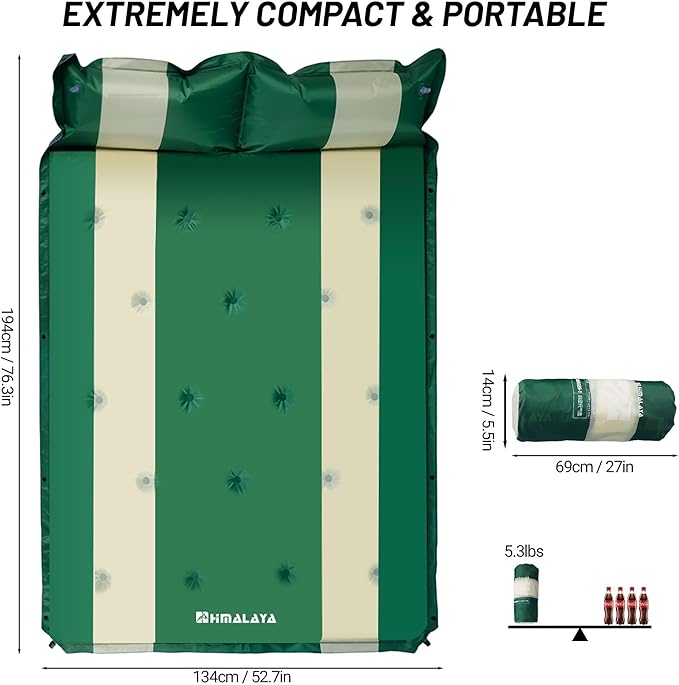 - 【Soft material】The size of the sleeping pad is 194x134x2.5 cm, which is made of high-quality polyester and has a soft and comfortable surface; The interior is filled with High-density foam to provide soft support.