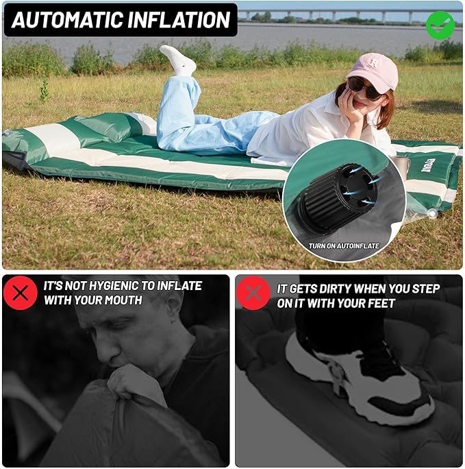 - 【Fast Inflation and Deflation】There is an automatic inflation nozzle, which can realize automatic inflation and deflation with a slight twist, and can be inflated with counterclockwise rotation. Easily build a sleeping area without spending too much time and energy.