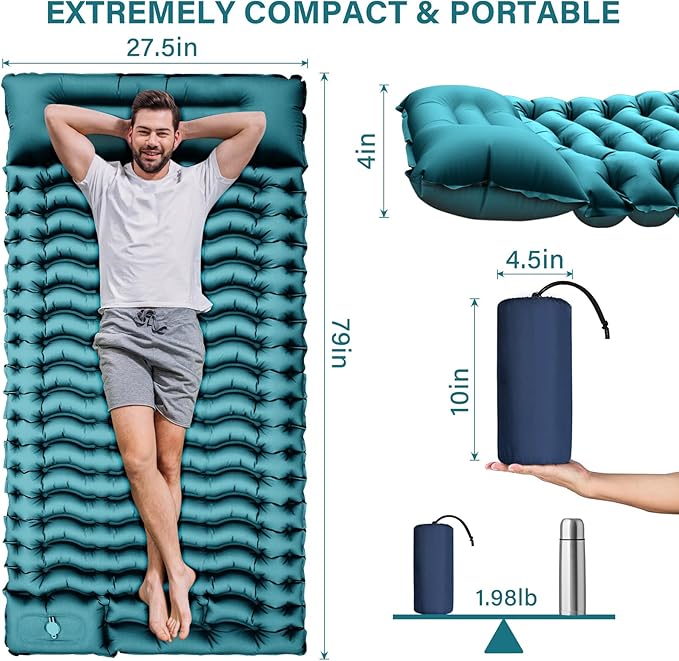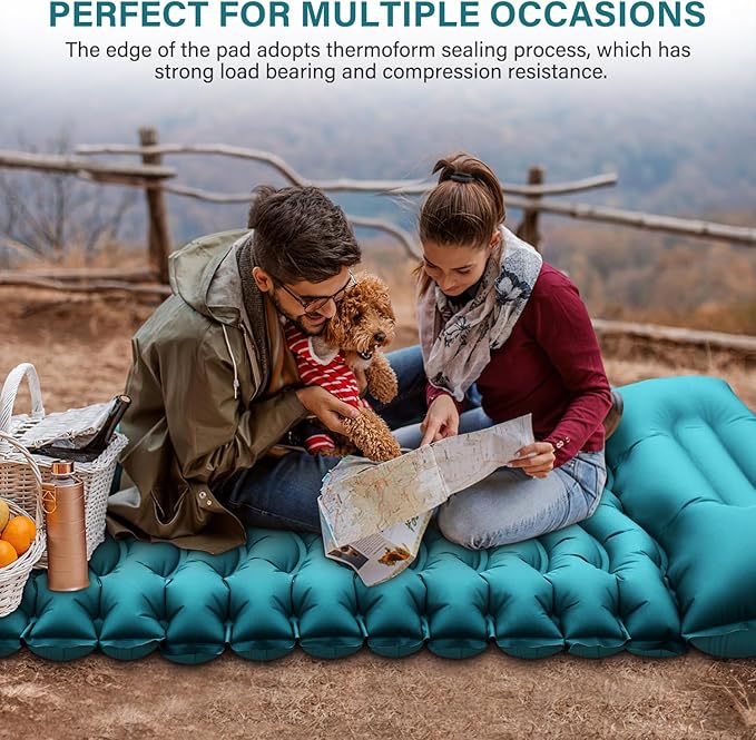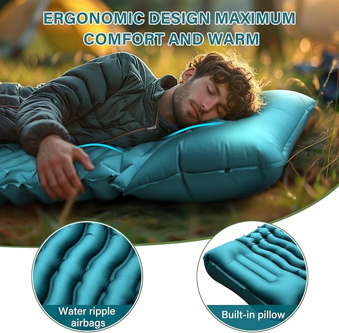 - 【 40D Nylon & Super Comfortable】 This camping sleeping pad is made of 40D nylon and has an inner TPU coating. It's tear-resistant and easy to clean. This pad is designed for comfort in any outdoor setting. Our inflatable camping mattresses are high-quality, so use them with confidence.