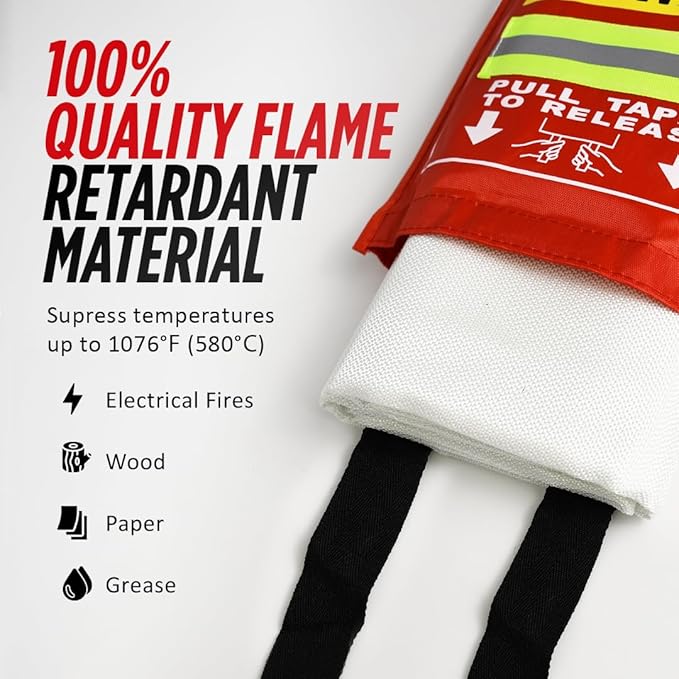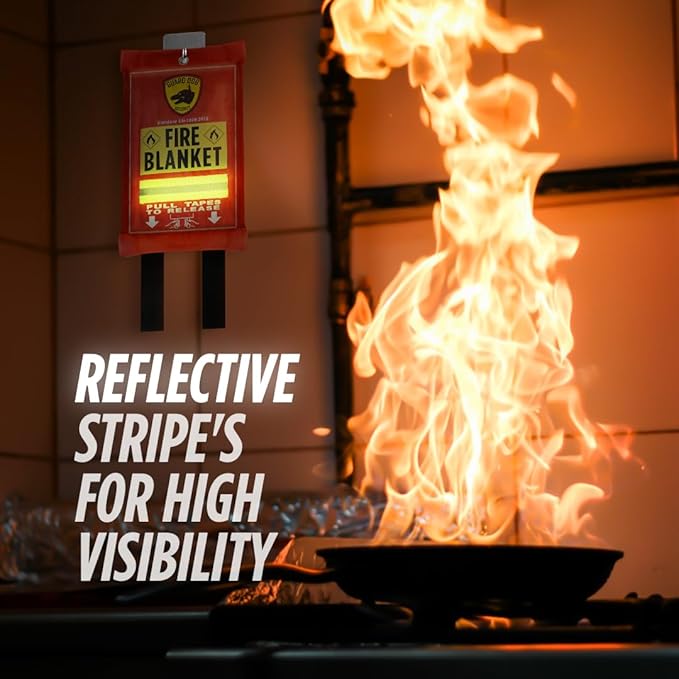 - REFLECTIVE STRIPE FOR QUICK LOCATION: Every second counts in a fire. That's why this fire blanket features a reflective stripe for easy identification in low-light conditions, ensuring you can grab and use it quickly