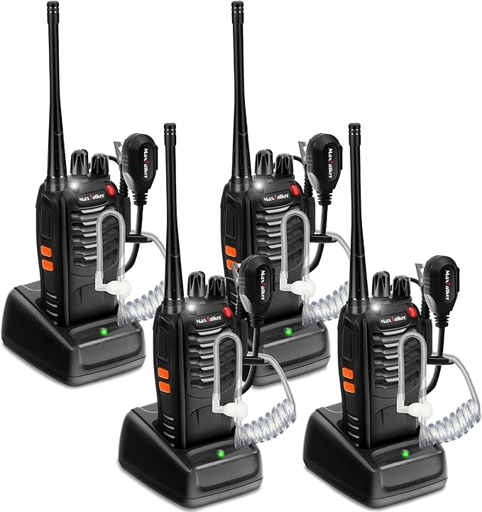 - Upgraded Earpiece And Clear Sound: MaxTalker walkie talkies rechargeable come with upgraded headset which design with Air Acoustic Tube and silicone in-ear earbuds to ensure that your calls are crystal clear in noisy environments and more comfortable to wear, ehich compared with the common walkie talkies with earpiece and mic set,you won't feel uncomfortable even if you have weared it for a long time, and deliver clearer sound quality,while protecting your privacy.