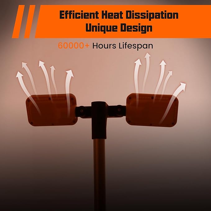 - 【8000 Lumens & Wide Range】Provides 8000 lumens of super bright light, you can see details clearly at all times. The 2 LED lamp heads can be rotated 180°and 270°to meet your lighting needs