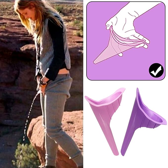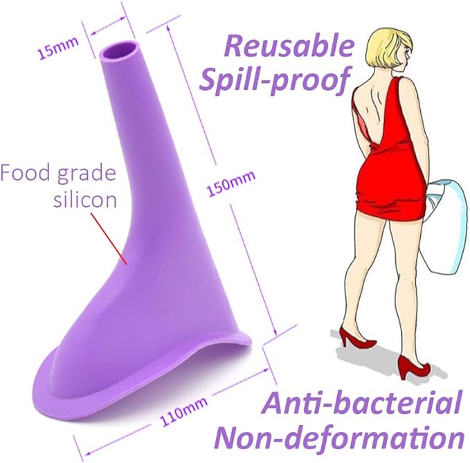- [ Women's Mobile Portable WC ] - Scret, reusable, funnel-shaped urination device for ladies to pee standing up, can be put in purse, pocket or vehicle glove box and foldable, women's personal WC anywhere, No more embrassing, no more hold urine in