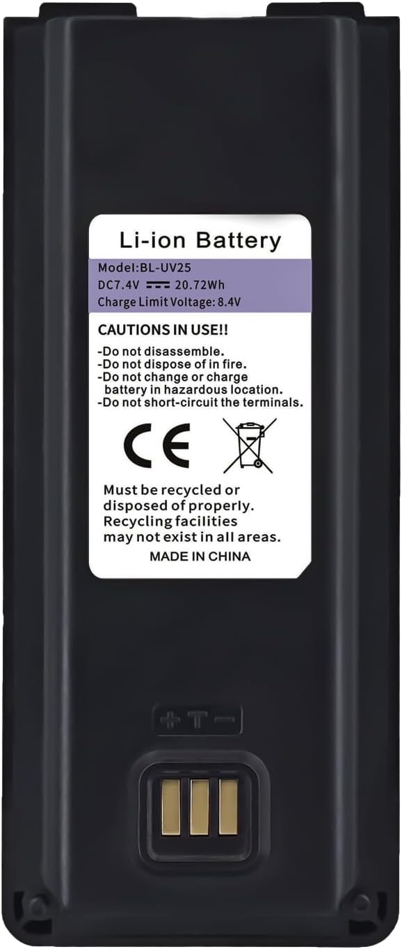 BAOFENG UV-25 Battery BL-UV25 for UV-25 Pro Max Radio USB-C Charging BL-UV25 High Capacity Li-ion Battery DC7.4V for Two Way Radio Accessories